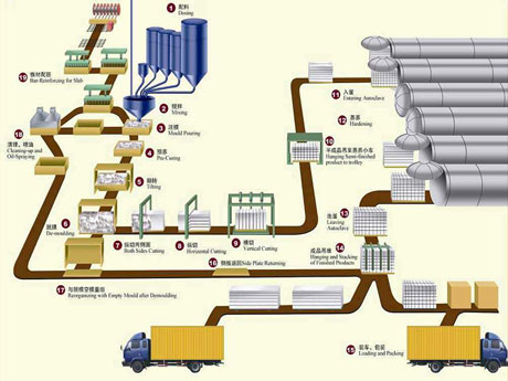 工藝:1.地翻加氣混凝土設(shè)備 2.空翻加氣混凝土設(shè)備