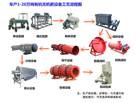 有機(jī)肥生產(chǎn)工藝流程與有機(jī)肥生產(chǎn)線設(shè)備配置息息相關(guān),一般有機(jī)肥生產(chǎn)線成套設(shè)備主要由發(fā)酵系統(tǒng)、干燥系統(tǒng)、除臭除塵系統(tǒng)、粉碎系統(tǒng)、配料系統(tǒng)、混合系統(tǒng)、造粒系統(tǒng)、冷卻烘干系統(tǒng)、篩分系統(tǒng)和成品包裝系統(tǒng)組成。下面詳細(xì)說明有機(jī)肥生產(chǎn)工藝流程各環(huán)節(jié)系統(tǒng)的設(shè)備需求:
